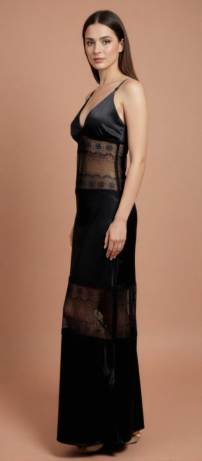 Desires net lace silk long Nighty